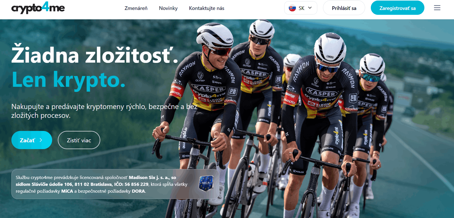 Crypto4me predstavuje pre domáci trh prelomové riešenie, ktoré spája svet globálnych financií s lokálnou istotou a profesionálnym prístupom. Platforma búra bariéry v digitálnych investíciách a sprístupňuje kryptomeny širokej verejnosti. Ako licencovaný subjekt pod hlavičkou Madison Six prináša kombináciu bezpečnosti podľa štandardov MiCA a maximálnej jednoduchosti pre každého moderného používateľa.