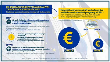 Podľa zistení úradu, v projektoch Integrovaného regionálneho operačného programu (IROP) riadiaci ani sprostredkovateľský orgán nedokázali odhaliť nesprávne nastavené hodnoty merateľných ukazovateľov nielen pri schvaľovaní projektov, ale ani pri ich realizácii. Dodržiavanie merateľných cieľov je pritom priamo úmerne spojené s efektívnosťou a účelnosťou použitia európskych i národných zdrojov. Ak realizátor projektu nenaplní zadefinované ukazovatele hrozí, že nielen on, ale aj štát bude sankcionovaný. Nedostatky v nastavení pravidiel monitorovania a vnútornej kontroly zistil Najvyšší kontrolný úrad pri preverovaní procesov v rámci projektov financovaných z Európskych štrukturálnych a investičných fondov.